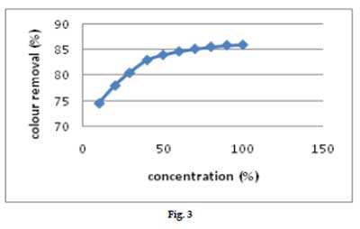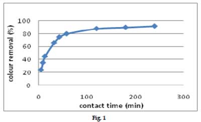 初始濃度對(duì)顏色去除的影響如圖3所示。從圖中可以明顯看出,在初始階段,顏色去除是快速的。此外,對(duì)于相同的平衡時(shí)間,對(duì)于初始濃度的較大值,顏色去除率較高,或者較低濃度的吸附百分比越多,并且隨著初始濃度的增加而降低。這可能是由于以下事實(shí):對(duì)于固定的活性炭劑量,總有效吸附位點(diǎn)受到限制,從而吸附幾乎相同量的吸附物,從而導(dǎo)致吸附物的吸收百分比降低,相應(yīng)于初始吸附物濃度的增加。活性炭在1小時(shí)內(nèi)達(dá)到約97%的顏色去除。