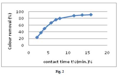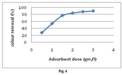 活性炭劑量對(duì)顏色去除的影響如圖4所示。觀察到每單位重量活性炭的顏色去除隨著活性炭負(fù)載的增加而降低。另一方面,隨著活性炭負(fù)載從0.5增加到2.0g / l,去除百分比從28%增加到97%。發(fā)現(xiàn)隨著活性炭的劑量增加至2g/l,顏色的降低增加,并隨著活性炭劑量的進(jìn)一步增加保持幾乎恒定。