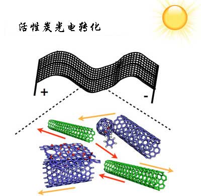 活性炭材料是光伏太陽能電池的優秀候選者:自然界中含量高,具有高光吸收性,并保持優異的熱穩定性和光穩定性。其靈感來源于一般的碳納米材料可以是金屬或半導體,只需要一種金屬和一種半導體來制造太陽能電池。