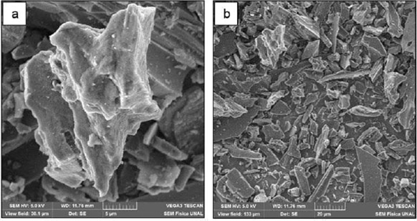 圖1:從渲染過(guò)程中產(chǎn)生的副產(chǎn)品獲得的活性炭顯微照片。(a)1000x。(b)100X。